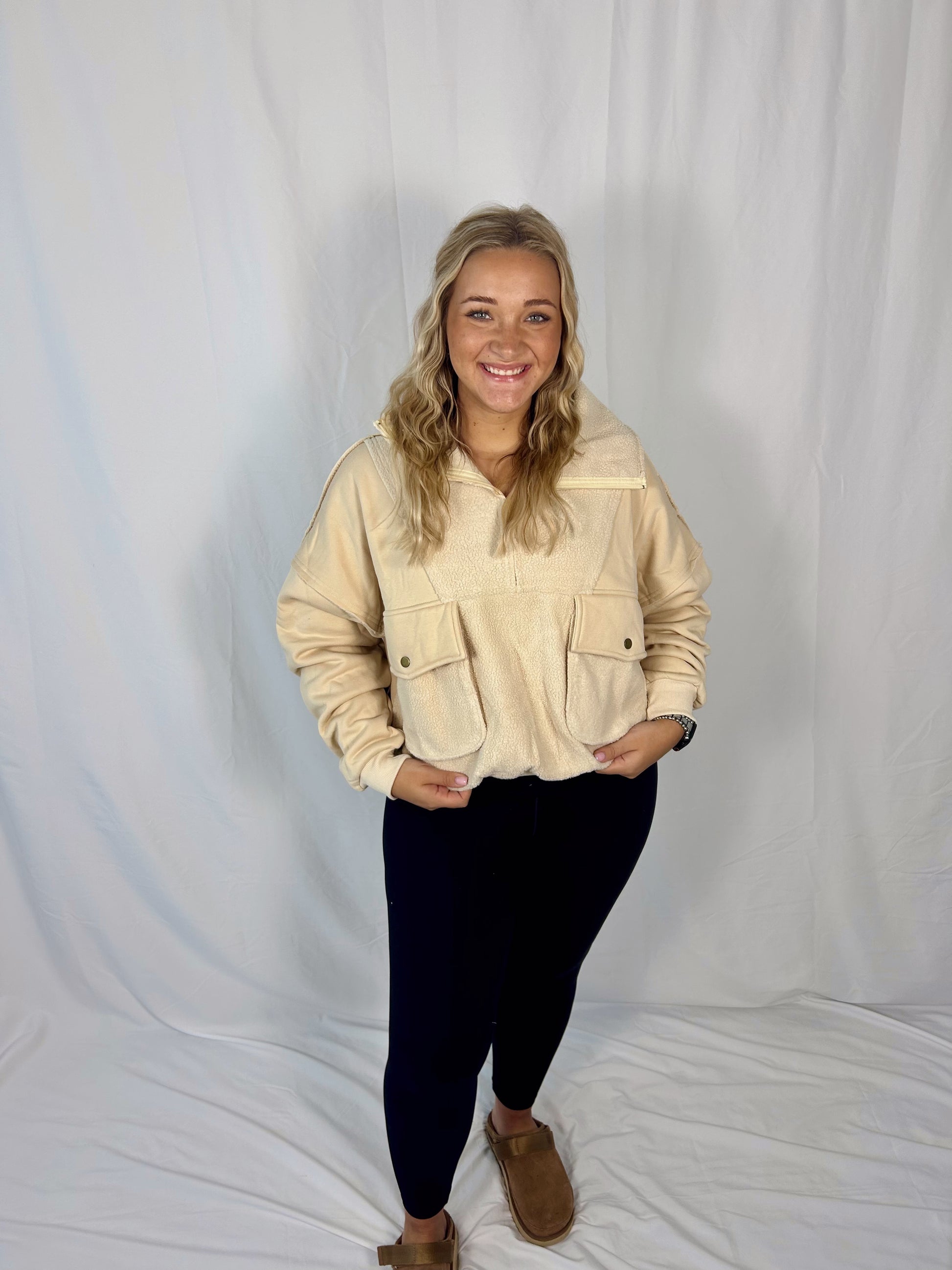 Comfy never looked so cute! The Carter Pullover is that perfect blend of cozy and casual — with a soft fleece feel, oversized fit, and the prettiest neutral shade that goes with everything. We’re obsessed with the half-zip neckline and those big statement pockets.