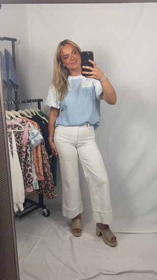 With puff sleeves and a floral patchwork print, this blouse brings easy beauty to any warm-weather day. Just add denim and go, Darlin’.