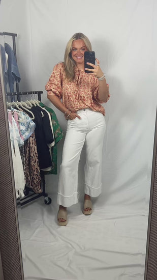 Exude effortless charm with this delicate floral blouse, featuring elegant bow-tie details, pintuck pleats, and graceful puff sleeves. Perfect paired with wide-leg pants or your favorite jeans for a breezy, feminine look. 100% Polyester