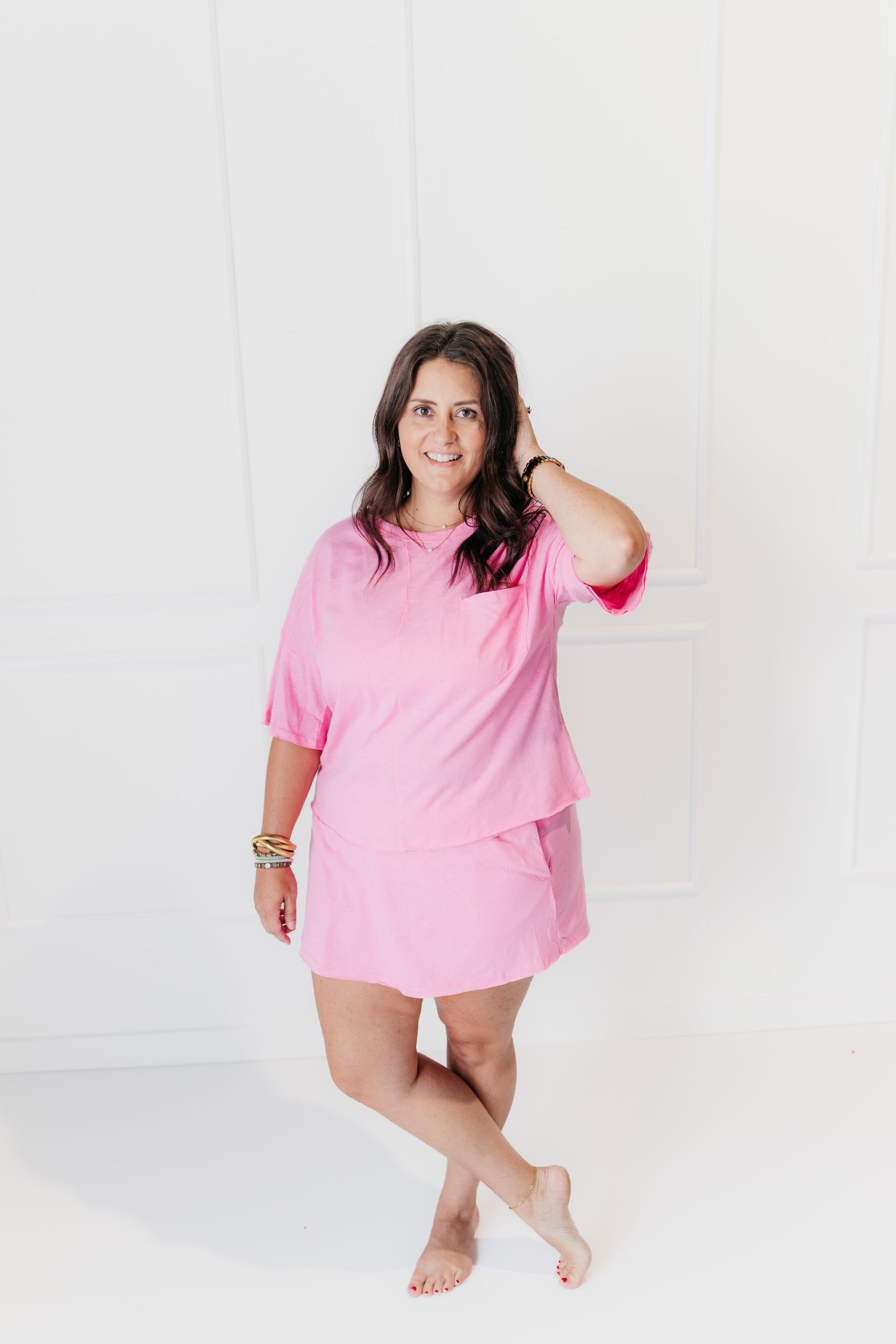 Effortless style meets all-day comfort in this two-piece set. Featuring a relaxed-fit tee and a flattering high-waist skort, it's your go-to for easy, everyday dressing.